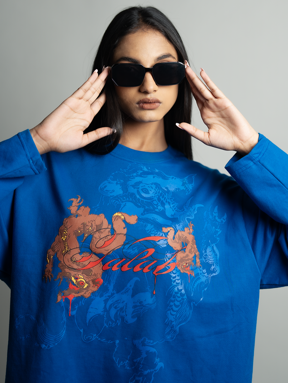 BLUE BLOOD THRUST OVERSIZED FULL SLEEVE T-SHIRT